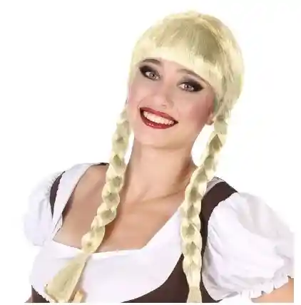 Peluca Rubia Larga Con Trenza Para Hora Loca, Halloween, Carnaval Ref. Pm-44907