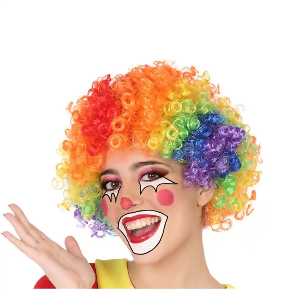 Peluca de pelo corto sintético y rizado estilo afro en diferentes colores: azul, verde, rojo y naranja. Podrás combinarla con el disfraz que tú quieras