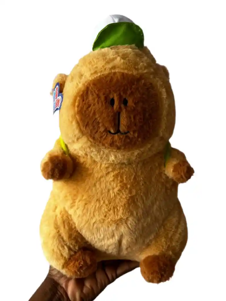 La sensación del año: Capibaraaaaaas. Disponible Con su representativa maleta verde y su plus más cool su gorra. Hipoalergénico. Medidas: 30cm alto x 15cm ancho.