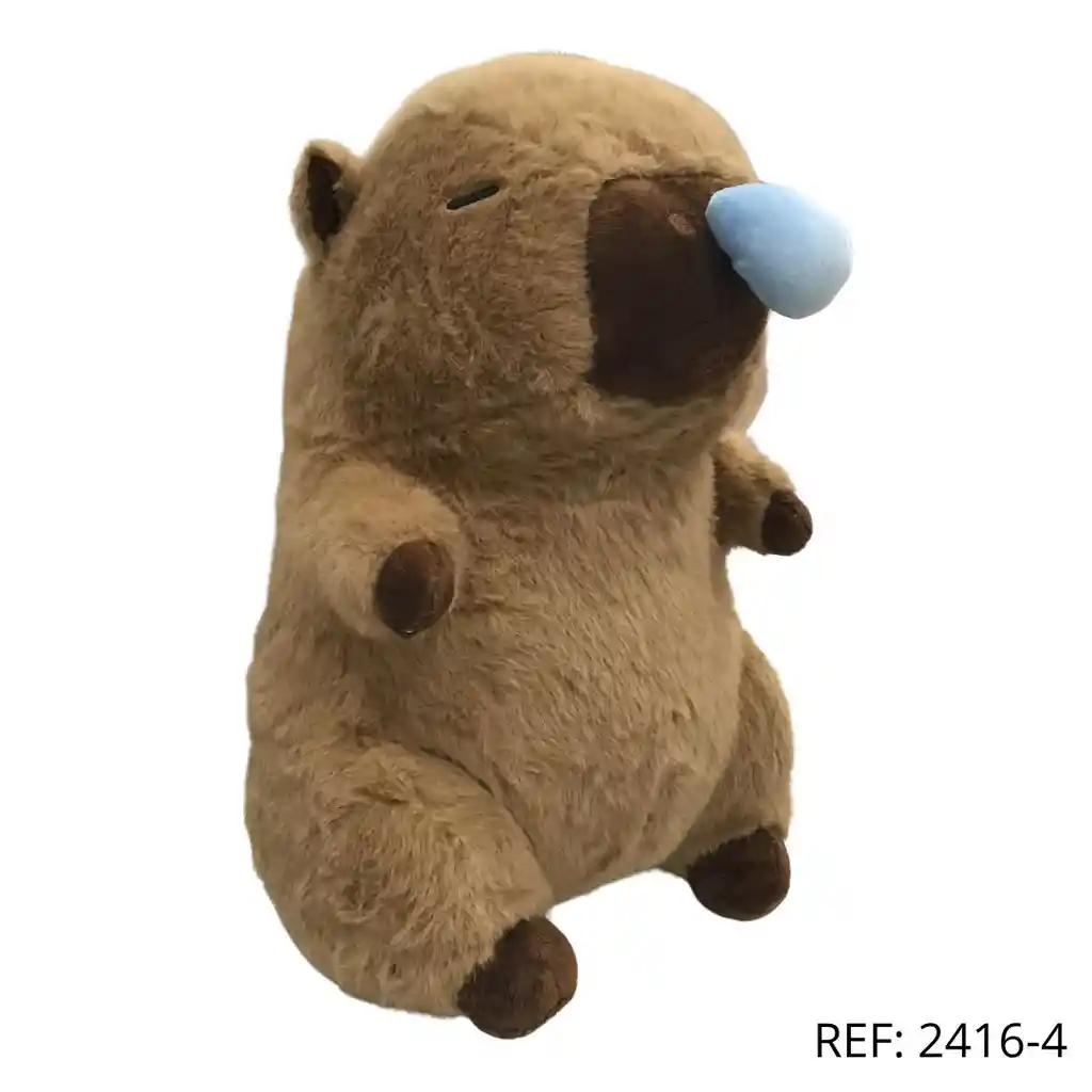 Peluche capibara con nariz azul. Su diseño tierno y original lo hace ideal para coleccionar o abrazar.