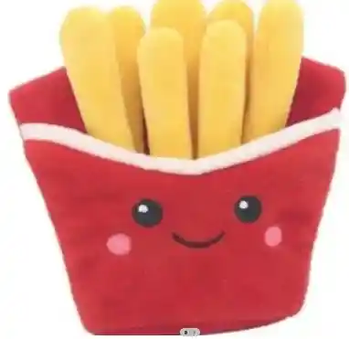 Peluche chillón con forma de papitas, con opción de esconder comida.