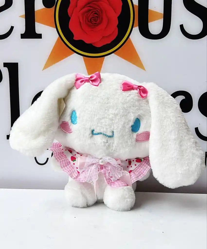 Muñeca Cinnamoroll de peluche, suave y esponjosa, de 22cm, con detalles en tonos rosa y expresión tierna, ideal para regalar o decorar. 💕