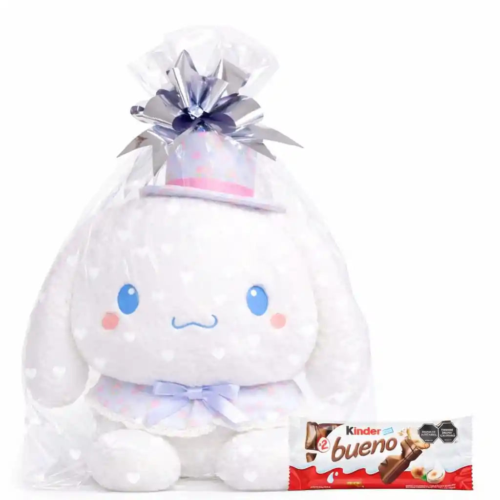 Sorprende con un regalo único, tierno y lleno de amor Este hermoso Peluche Cinnamoroll es la opción perfecta para cumpleaños, aniversarios o cualquier detalle especial. Su presentación tipo regalo lo hace aún más impactante desde el primer momento. Incluye una delicada bolsa transparente con corazones blancos y un elegante moño decorativo, listo para entregar sin necesidad de envolver. Además, viene acompañado de una deliciosa chocolatina para hacer el detalle aún más especial Incluye: ✔ 1 Peluche Cinnamoroll ✔ 1 Bolsa transparente con corazones blancos ✔ 1 Moño decorativo ✔ 1 Kinder Bueno Medidas: Alto: 37 cm Ancho: 30 cm Características: ✔ Súper suave y esponjoso ✔ Diseño tierno y llamativo ✔ Ideal para regalar ✔ Presentación lista para sorprender Perfecto para: Cumpleaños, San Valentín, aniversarios o simplemente para alegrar el día de alguien especial. Importante: * Solo viene incluido lo que está en la descripción * El moño puede variar en el color * Otros elementos en las imágenes son solo decorativos