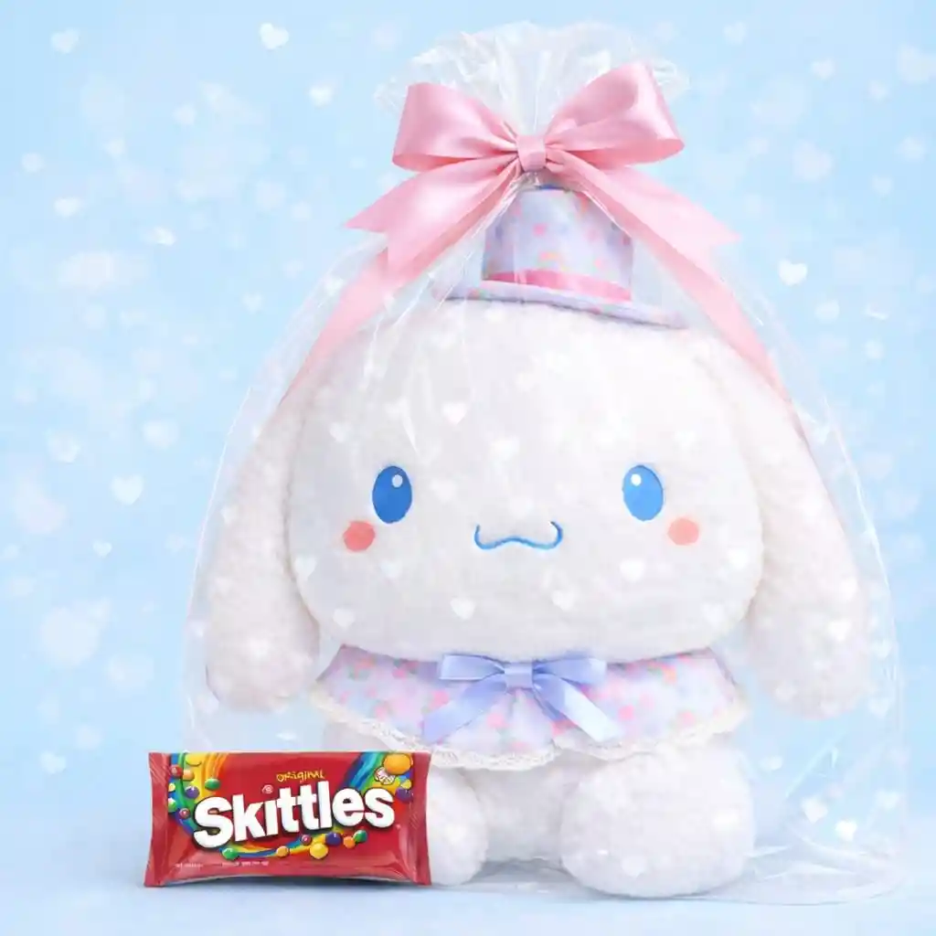 Sorprende con un regalo único, tierno y lleno de amor Este hermoso Peluche Cinnamoroll es la opción perfecta para cumpleaños, aniversarios o cualquier detalle especial. Su presentación tipo regalo lo hace aún más impactante desde el primer momento. Incluye una delicada bolsa transparente con corazones blancos y un elegante moño decorativo, listo para entregar sin necesidad de envolver. Además, viene acompañado de una deliciosa chocolatina para hacer el detalle aún más especial Incluye: ✔ 1 Peluche Cinnamoroll ✔ 1 Bolsa transparente con corazones blancos ✔ 1 Moño decorativo ✔ 1 SKITTLES Medidas: Alto: 37 cm Ancho: 30 cm Características: ✔ Súper suave y esponjoso ✔ Diseño tierno y llamativo ✔ Ideal para regalar ✔ Presentación lista para sorprender Perfecto para: Cumpleaños, San Valentín, aniversarios o simplemente para alegrar el día de alguien especial. Importante: * Solo viene incluido lo que está en la descripción * El moño puede variar en el color * Otros elementos en las imágenes son solo decorativos