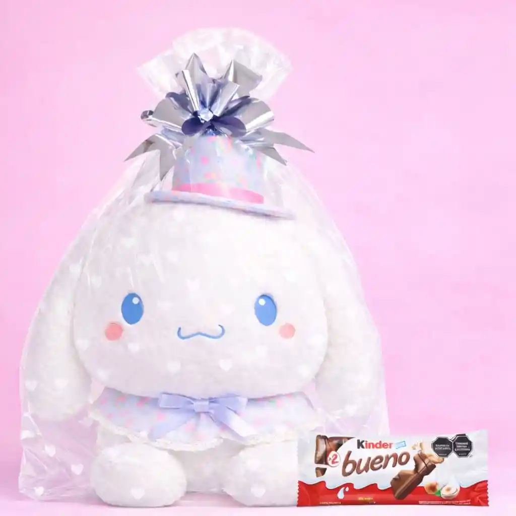Sorprende con un regalo único, tierno y lleno de amor Este hermoso Peluche Cinnamoroll es la opción perfecta para cumpleaños, aniversarios o cualquier detalle especial. Su presentación tipo regalo lo hace aún más impactante desde el primer momento. Incluye una delicada bolsa transparente con corazones blancos y un elegante moño decorativo, listo para entregar sin necesidad de envolver. Además, viene acompañado de una deliciosa chocolatina para hacer el detalle aún más especial Incluye: ✔ 1 Peluche Cinnamoroll ✔ 1 Bolsa transparente con corazones blancos ✔ 1 Moño decorativo ✔ 1 Kinder Bueno Medidas: Alto: 37 cm Ancho: 30 cm Características: ✔ Súper suave y esponjoso ✔ Diseño tierno y llamativo ✔ Ideal para regalar ✔ Presentación lista para sorprender Perfecto para: Cumpleaños, San Valentín, aniversarios o simplemente para alegrar el día de alguien especial. Importante: * Solo viene incluido lo que está en la descripción * El moño puede variar en el color * Otros elementos en las imágenes son solo decorativos