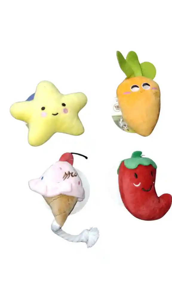 DISPONIBLES PELUCHES DE COMIDA PARA TU MASCOTA , CON SONIDO INTEGRADO (SE VENDE POR UNIDAD) DONA, BANANA,TOMATE, ZANAHORIA,HELADO, PATICA DE POLLO