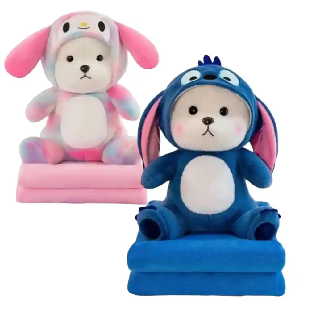 Peluche Almohada Con Cobija Semi térmica 3 En 1 Hermosos Diseños OSO PIJAMA Características Novedosas cobijas viajeras con peluche, la cobija viene dentro del muñeco. Ideal para obsequio. Hermosos Peluches 3 En 1: Peluche, Almohada + Cobija Semi térmica. Material: Terciopelo antialérgico. Tamaño apox cobijas:160x 110cm. Diseños disponibles con medidas aproximadas: prluche 45 cm x 28 cm cada diseño tiene un tamaño.