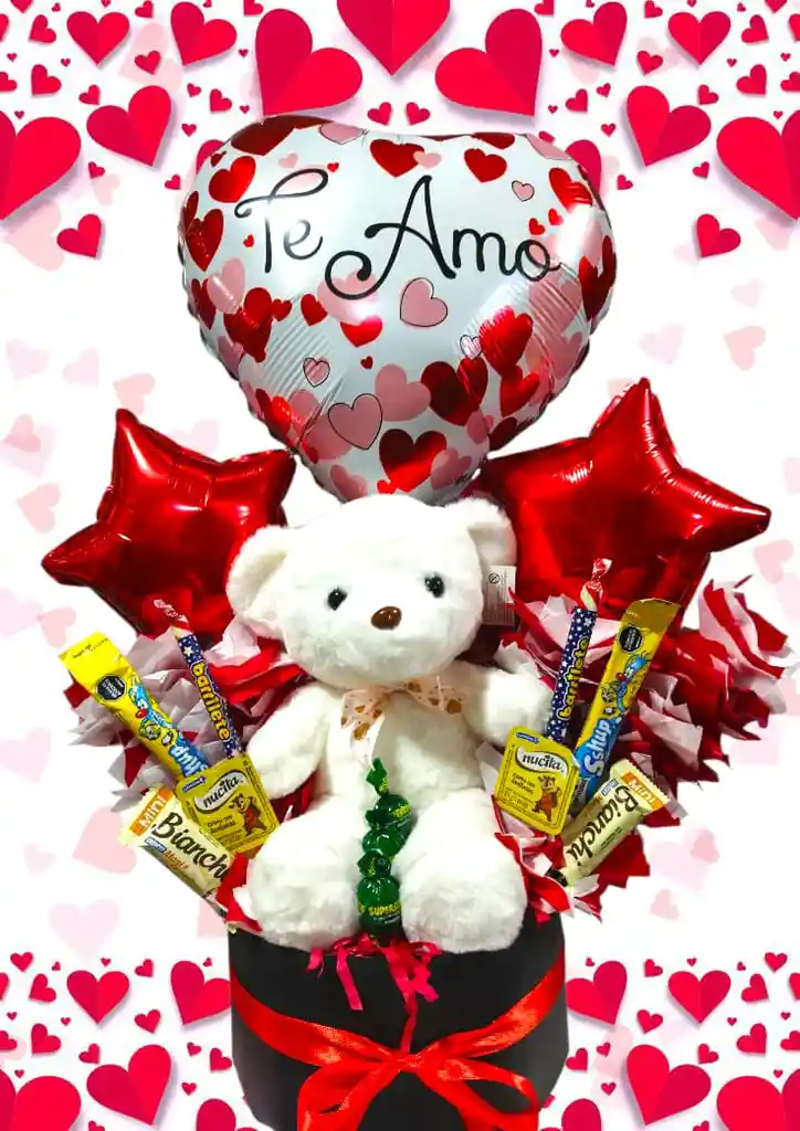 Arreglo para detalle de amor peluche con sonido " I LOVE" y deliciosa dulceria