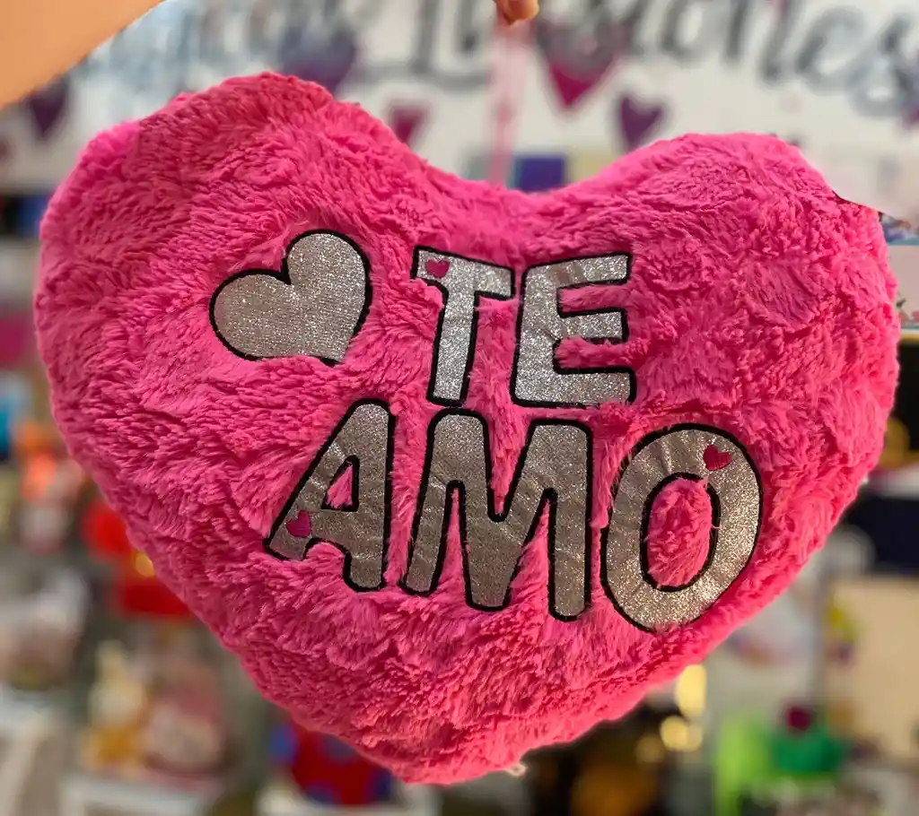 Peluche Corazón Te Amo en letras brillantes
