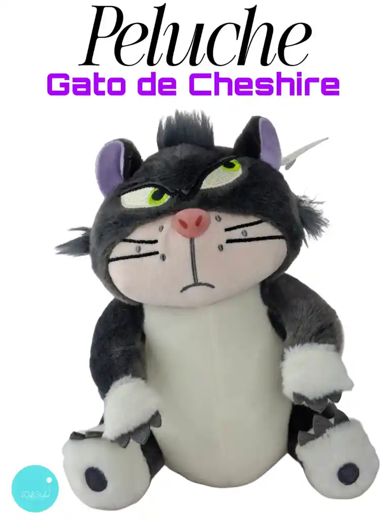 Peluche de gato con expresión enojada.