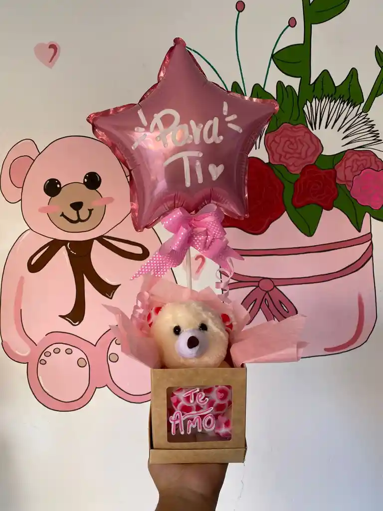 Caja sorpresa con frase "te amo" globo en forma de estrella, decoración y mensaje personalizado