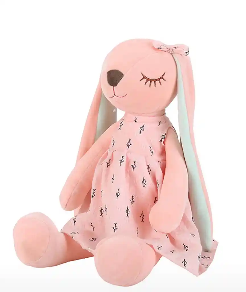 • Descripción: La compañera de sueños perfecta. Esta conejita de texturas suaves es ideal como objeto de apego para tu bebé. • Detalles: • Tamaño: Ideal para que manos pequeñas la puedan abrazar. • Diseño: Vestido rosa con detalles florales y moño en la oreja. • Seguridad: Ojos y detalles bordados (sin piezas plásticas pequeñas). • 🎁 Ideal para: Regalo de baby shower o decoración del cuarto.