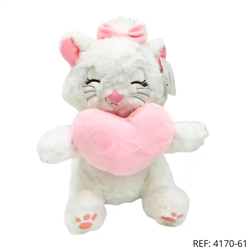 Peluche Gatita Marie con corazón rosado, suave y adorable. Ideal para regalar, decorar o sorprender con un detalle tierno y lleno de amor