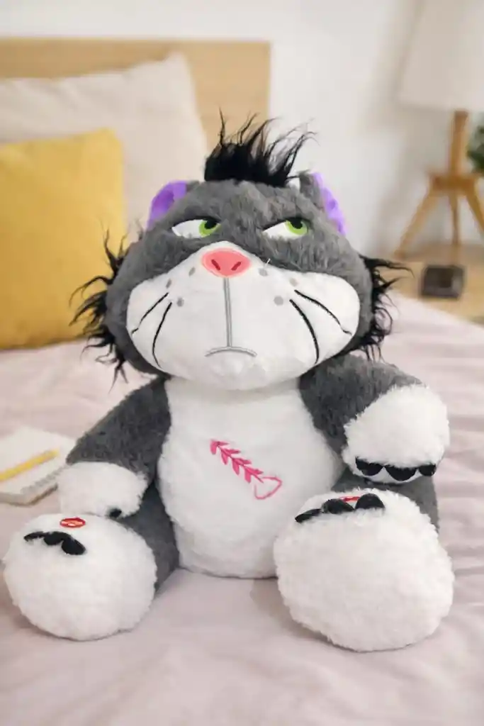 Sorprende con un detalle único, tierno y diferente Este hermoso peluche gato Lucifer Cenicienta, es el regalo perfecto para expresar cariño de una forma especial. Características destacadas: •Función de luz suave •Sonidos integrados •Efecto de respiración realista (simula que duerme) •Textura suave y agradable al tacto •Diseño adorable ideal para regalo. Perfecto Para: •Cumpleaños •Sorpresas románticas •Detalles especiales •Decoración de habitación •Un regalo que transmite emociones y compañía, ideal para cualquier ocasión. Medidas: •Alto: 30 cm •Ancho: 23 cm •Incluye 3 Pilas AAA Tener en Cuenta : Solo incluye el peluche. Los demás accesorios o elementos que aparecen en las imágenes son únicamente para ambientación.