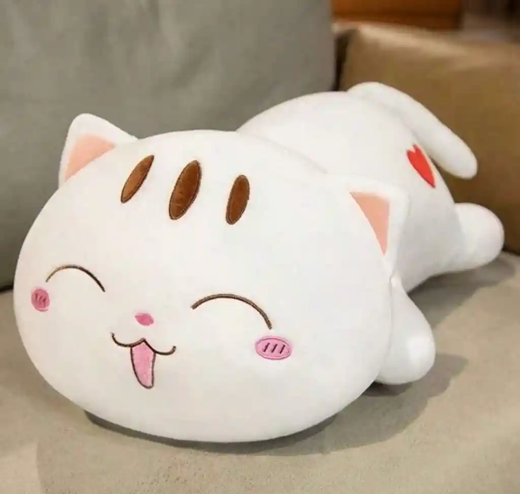 Tamaño mediano Textura Ultra Suave Premium: Confeccionado con materiales tipo terciopelo de alta calidad, increíblemente suave al tacto y delicado con la piel sensible. • Diseño Adorable Kawaii: Inspirado en el estilo anime japonés, con una expresión tierna de gatito feliz y un detalle de corazón rojo. • Funcionalidad Versátil: Su forma alargada lo convierte en una excelente almohada de apego para dormir, un cojín decorativo para la habitación o un compañero de juegos. • Hipoalergénico y Seguro: Relleno de algodón PP de alta densidad, libre de materiales tóxicos y seguro para todas las edades (hipoalergénico). • Fácil de Lavar: Su material resistente permite un lavado fácil a mano para mantenerlo siempre limpio.