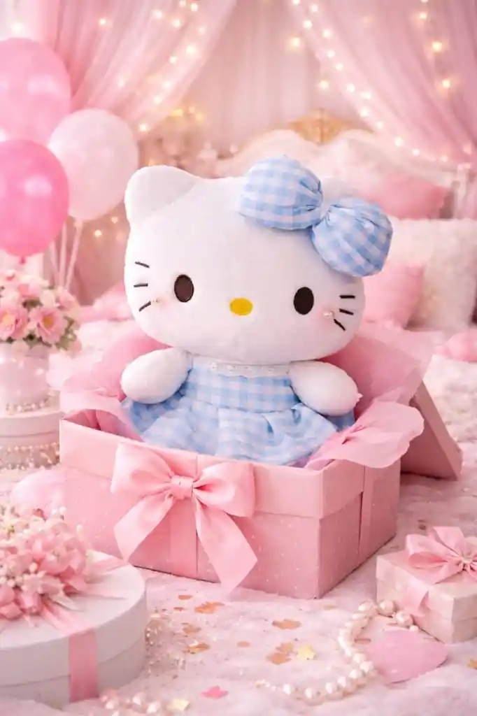 Hermoso peluche de Hello Kitty, perfecto para regalar en cumpleaños, sorprender a alguien especial o decorar habitaciones infantiles. Su diseño tierno y suave lo convierte en un detalle ideal para niñas y fanáticos de este personaje. Fabricado con material suave al tacto y con un lindo vestido que le da un estilo delicado y encantador. Medidas aproximadas: * Alto: 25 cm * Ancho: 22 cm Ideal para: Regalos de cumpleaños 🎀 Decoración de habitación infantil 💝 Detalles especiales Tener en Cuenta: La compra incluye únicamente el peluche de Hello Kitty. Los globos, cajas, pastel u otros accesorios que aparecen en algunas imágenes son solo para ambientar la fotografía y no están incluidos.