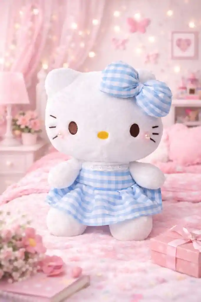 Hermoso peluche de Hello Kitty, perfecto para regalar en cumpleaños, sorprender a alguien especial o decorar habitaciones infantiles. Su diseño tierno y suave lo convierte en un detalle ideal para niñas y fanáticos de este personaje. Fabricado con material suave al tacto y con un lindo vestido que le da un estilo delicado y encantador. Medidas aproximadas: * Alto: 25 cm * Ancho: 22 cm Ideal para: Regalos de cumpleaños 🎀 Decoración de habitación infantil 💝 Detalles especiales Tener en Cuenta: La compra incluye únicamente el peluche de Hello Kitty. Los globos, cajas, pastel u otros accesorios que aparecen en algunas imágenes son solo para ambientar la fotografía y no están incluidos.