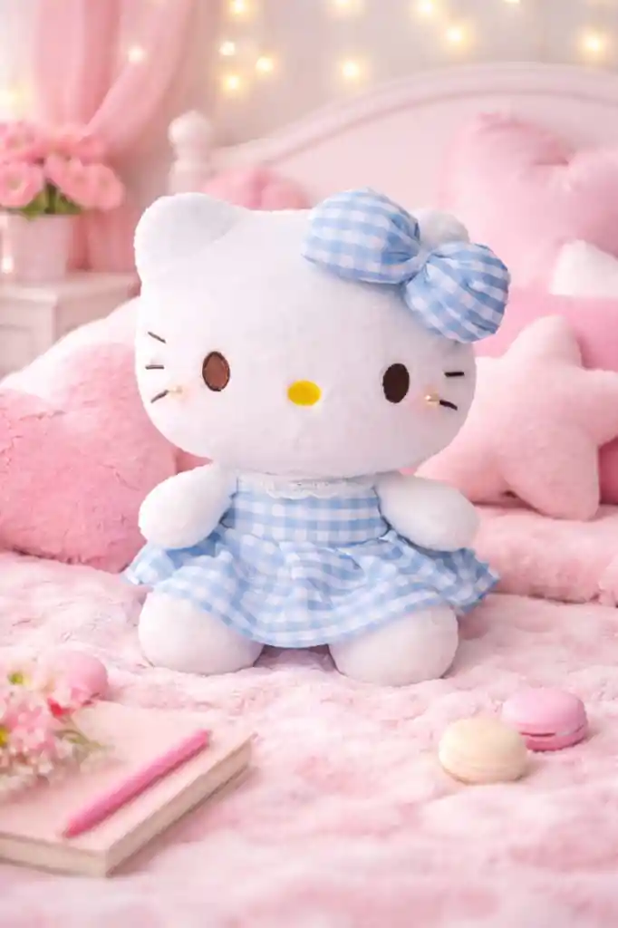 Hermoso peluche de Hello Kitty, perfecto para regalar en cumpleaños, sorprender a alguien especial o decorar habitaciones infantiles. Su diseño tierno y suave lo convierte en un detalle ideal para niñas y fanáticos de este personaje. Fabricado con material suave al tacto y con un lindo vestido que le da un estilo delicado y encantador. Medidas aproximadas: * Alto: 25 cm * Ancho: 22 cm Ideal para: Regalos de cumpleaños 🎀 Decoración de habitación infantil 💝 Detalles especiales Tener en Cuenta: La compra incluye únicamente el peluche de Hello Kitty. Los globos, cajas, pastel u otros accesorios que aparecen en algunas imágenes son solo para ambientar la fotografía y no están incluidos.