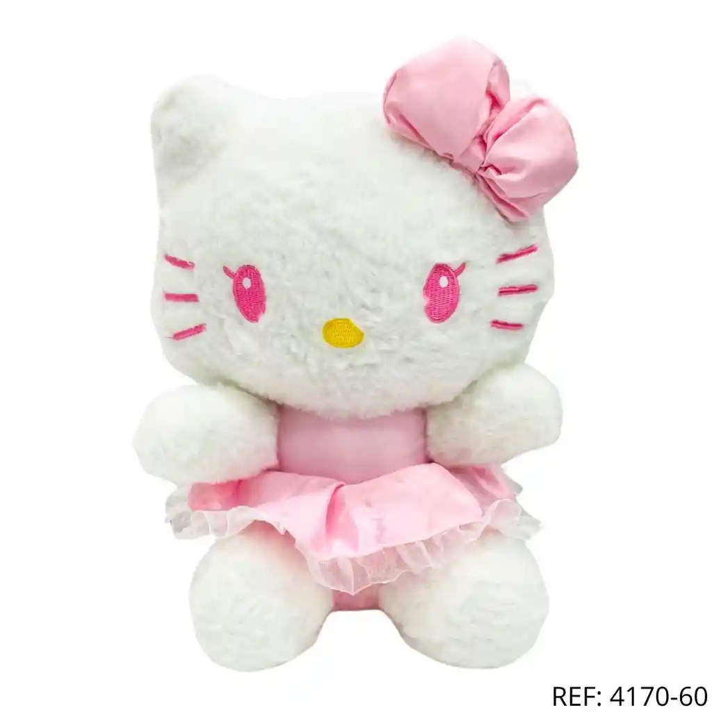 Peluche Hello Kitty suave y adorable, con vestido rosado y lazo decorativo. Ideal para regalar, decorar o sorprender a alguien especial con un detalle tierno