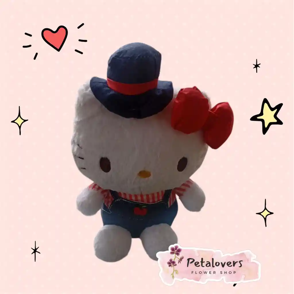 Esta adorable Hello Kitty con overol es el complemento perfecto para tus arreglos florales. Su diseño tierno y moderno la convierte en un detalle ideal para sorprender con dulzura y estilo en cualquier ocasión especial. Perfecta para acompañar flores y hacer el regalo aún más especial. 🎁💐💕