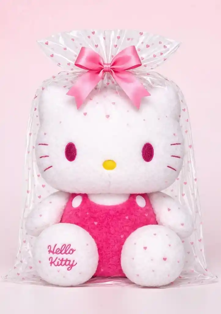 Sorprende con un regalo tierno, elegante y listo para entregar. Este hermoso peluche de Hello Kitty viene presentado en una delicada bolsa transparente con corazones y moño, ideal para ocasiones especiales. Su tamaño grande y acabado suave lo convierten en un detalle perfecto para cumpleaños, aniversarios o simplemente para expresar cariño. Medidas: •Alto: 43 cm •Ancho: 41 cm Incluye: •1 Peluche Hello Kitty •1 Bolsa de regalo transparente con corazones •1 Moño decorativo Importante: Solo incluye lo mencionado en la descripción. Los demás accesorios que aparecen en la imagen son únicamente para ambientar y no están incluidos. Ideal para: Regalos sorpresa Decoración Detalles románticos o especiales