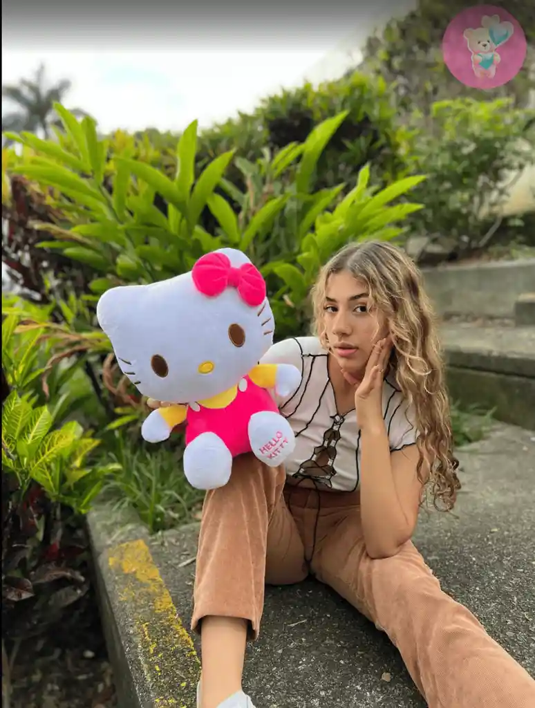 Hermoso peluche Hello kitty 45cm Nuestros peluches son fabricados con materiales de primera calidad, relleno de algodón siliconado antialergico suave que no se deforma ni endurece con el tiempo y brinda sensación de suavidad al tacto.