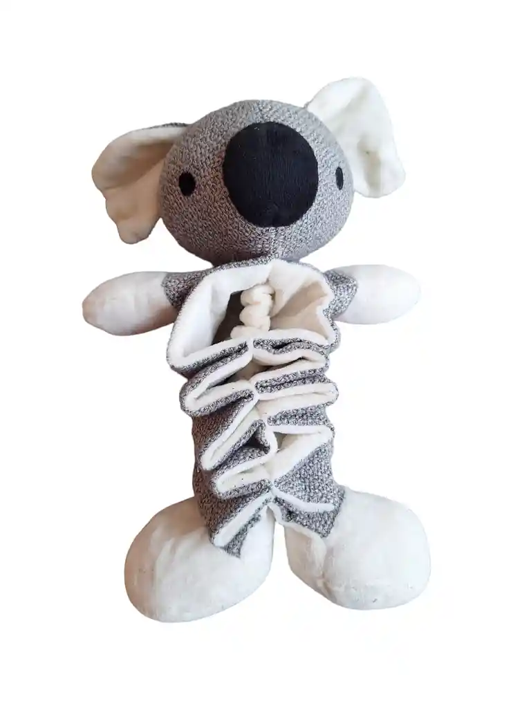 El peluche "Sonido de Bolsa" es un juguete interactivo diseñado para mascotas, especialmente gatos y perros, que simula el sonido crujiente y atractivo de una bolsa arrugada. Este peluche está fabricado con materiales suaves y duraderos que imitan la textura de una bolsa de plástico arrugada, pero sin el riesgo de que la mascota pueda ingerir plástico.