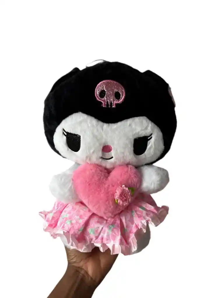 De la familia Sanrio, llega la más rebelde de todas: Kuromi, en su presentación más tierna con su vestido rosa y un corazón cargado de amor. La sensación en el género femenino, de las más pequeñas a las más grandes. Hipoalergénico. Medidas: 30 CM alto x 15cm ancho