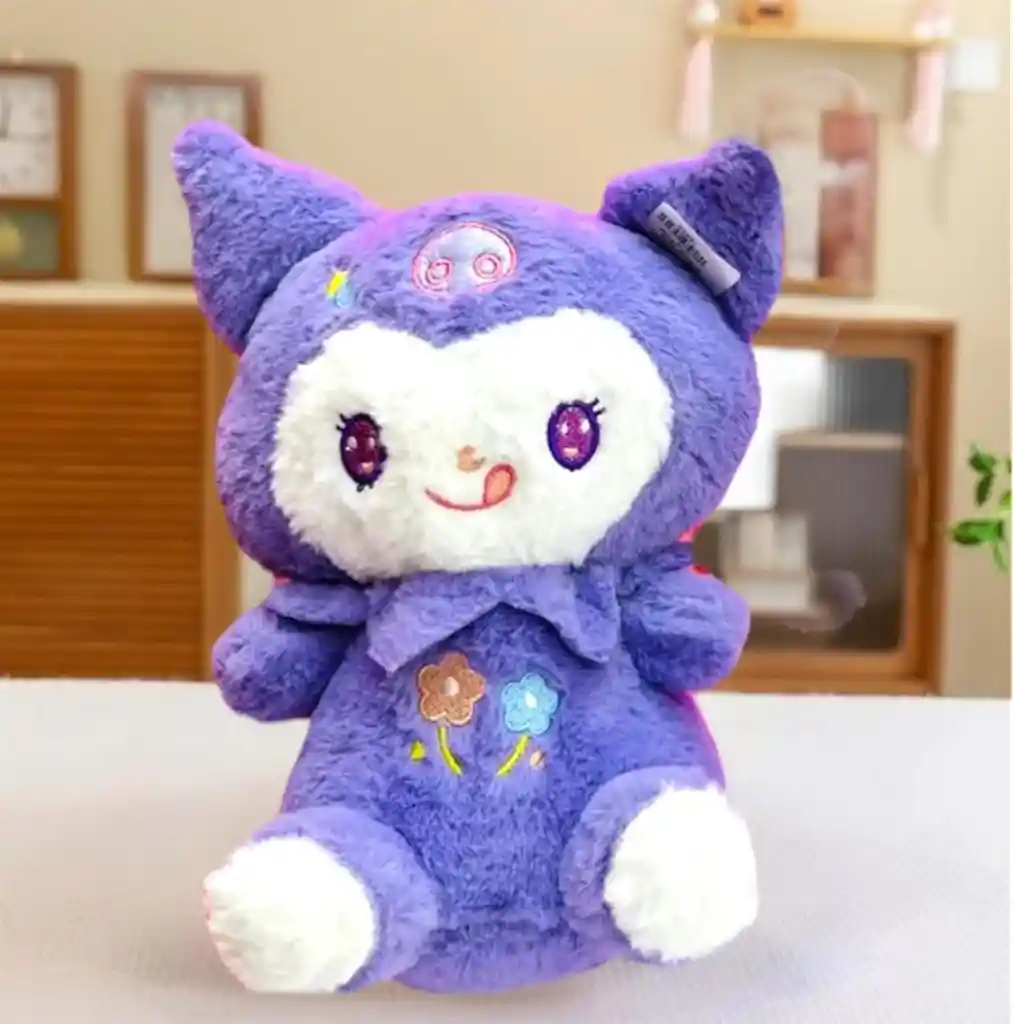 Peluche Kuromi • Material: poliéster, algodón PP, felpa • Medida: 20 cm aprox *Debido a factores como la luz y las pantallas, existen ligeras diferencias entre el producto y la imagen* * Debido a la medición manual, permita un error 0.1 a 2 cm en las medidas*