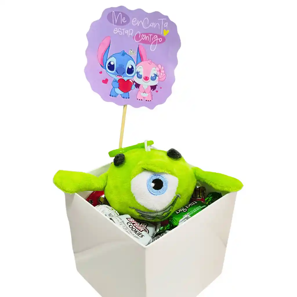Peluche Llavero Mike Wazowski 10 cm Con caja de Dulces y tarjeta (se puede elegir despues de compra la tarjeta )
