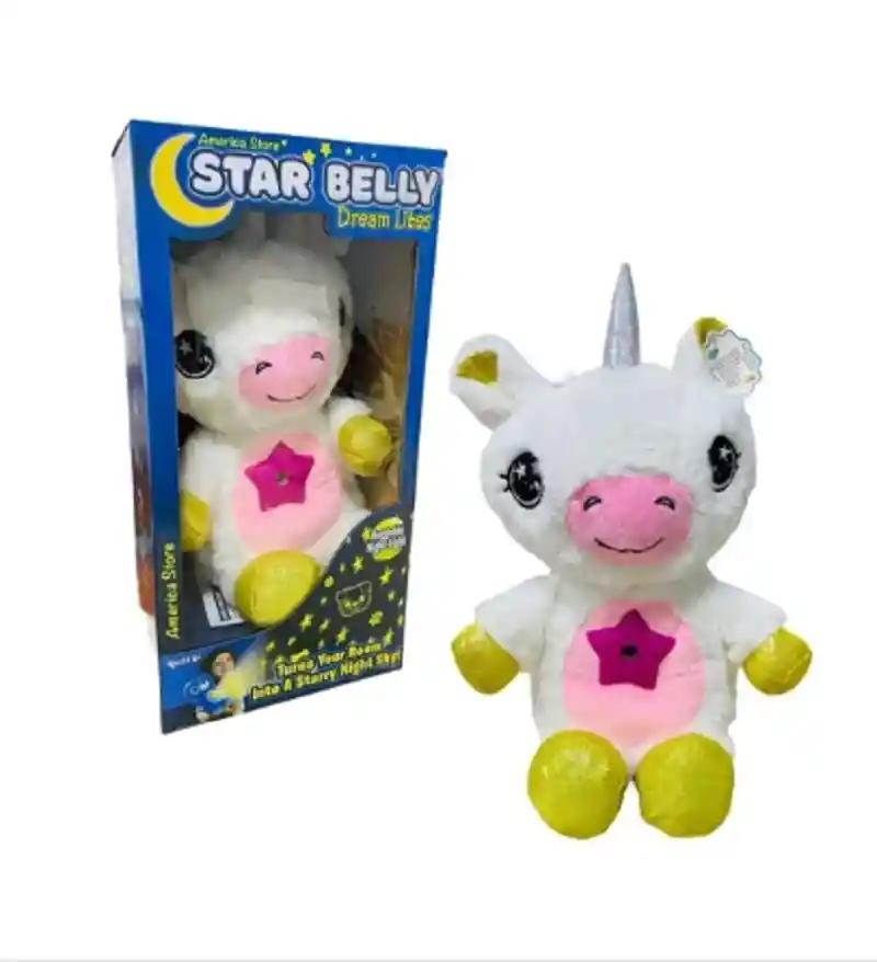 Patrones mágicos en movimiento: Star Belly Dream lites es un juguete suave y cómodo que crea estrellas brillantes y formas divertidas que se desplazan sobre las paredes y el techo. Un arco iris de colores: a su hijo le encantará abrazar a su amigo de peluche el día y noche. Simplemente presionando sobre el vientre cambia la luz a seis colores diferentes. Elija un unicornio, un cachorro, un gatito o un dinosaurio Sueño relajante: con un vientre suavemente brillante que hace que su hijo tenga una reconfortante luz nocturna. Ideal para el hogar, viajes, fiestas de pijamas, tiempo de juego y más Nombre del artículo: luz nocturna Material: Material de algodón ABS Fuente de alimentación: 3 pilas AAA (no incluidas) Características: entretenido, fantásticos patrones en movimiento, colores brillantes Tamaño: 40cm x 24cm x 10cm/15,75 "x 9,45" x 3,94 Notas: Debido a la luz y a la diferencia de configuración de la pantalla, el color del artículo puede ser ligeramente diferente al de las imágenes. Por favor, permita una pequeña diferencia de dimensión debido a las diferentes medidas manuales. El paquete incluye: 1 x luz de noche