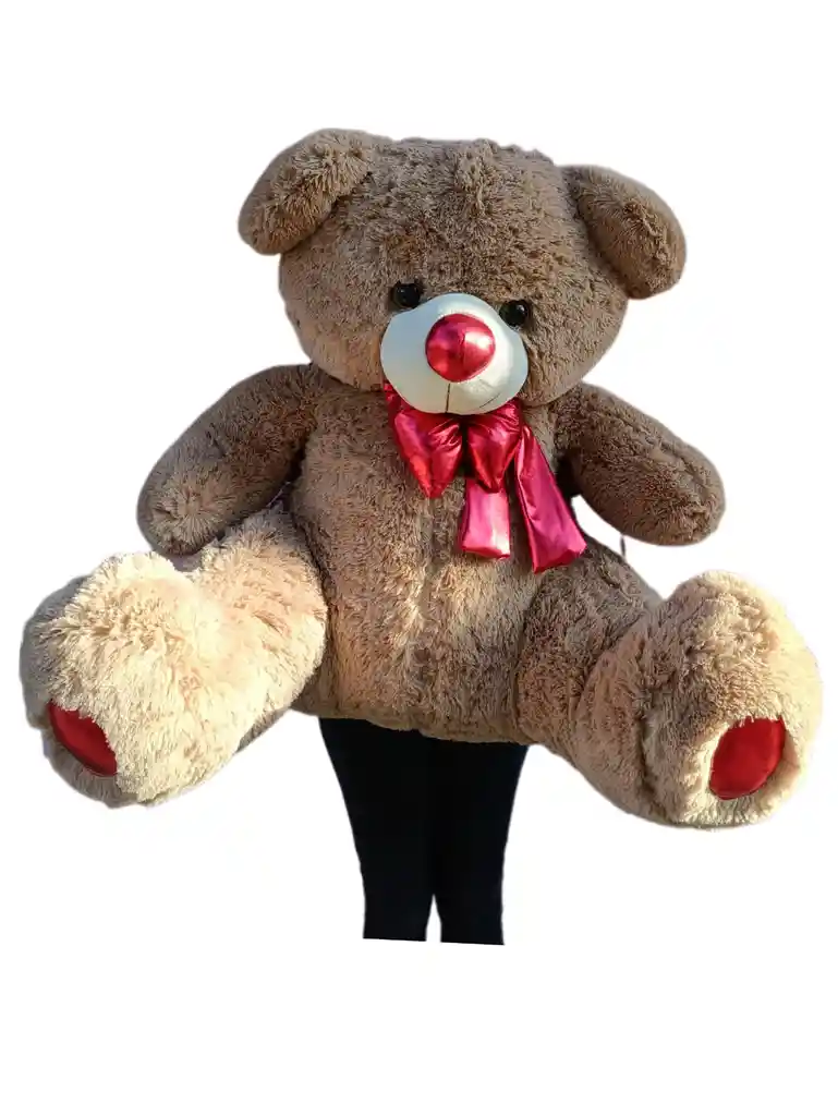 Tierno oso café grande con bufanda color rojo, perfecto para ti o para regalar. Amor en grandes cantidades. Hipoalergénico. Incluye moño y 2 globos en helio. Tamaño 1.10 metro.