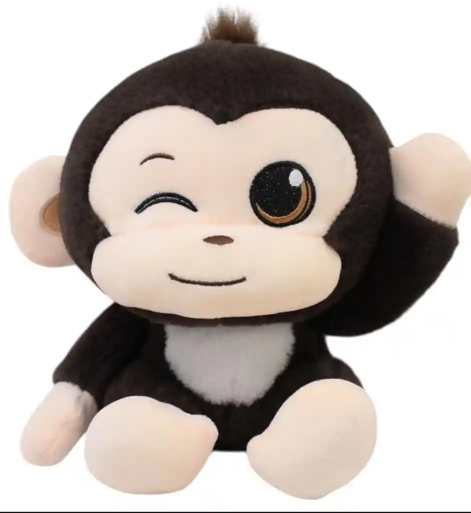 Divertido peluche de mico con una expresión pícara y encantadora, destacando por su guiño juguetón y su suave pelaje en color café oscuro. Su diseño compacto y tierno lo convierte en el detalle perfecto para transmitir alegría y sacarle una sonrisa a esa persona especial. 📏 Medidas: Alto: 20 cm Ancho: 14 cm Largo (profundidad): 14 cm (Las medidas pueden variar ligeramente.) 🐒 Características: Tela de felpa suave y aterciopelada de alta calidad. Detalles faciales bordados, incluyendo un ojo grande y brillante y un tierno guiño. Contraste de colores crema y café con un pequeño mechón de pelo en la parte superior. Cuerpo blandito y liviano, ideal para abrazar o llevar a todas partes. 🎁 Ideal para: Bromas cariñosas, regalos de aniversario, detalles para niños o como un toque divertido en decoraciones y anchetas. ⚠️ Los tonos y accesorios pueden variar ligeramente según disponibilidad. ¡Un monito travieso y adorable que está listo para acompañar tus mejores momentos! 🐒✨