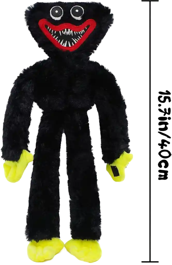 Descripción Poppy Playtime Muñeco Huggy Wuggy Peluche De 49 cm. Materiales: Felpa rellena de algodón siliconado antialergico suave que no se deforma ni endurece con el tiempo y brinda sensación de suavidad al tacto.