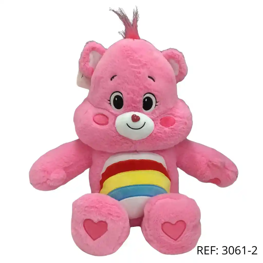 Oso Cariñosito rosado de peluche, con arcoíris bordado en el pecho. Tierno, colorido y perfecto para regalar. 54CM X 63CMX 44CM APROX.