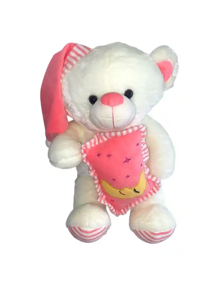 Hermoso peluche hecho en Material de alta calidad: Estan hechos de tela de felpa agradable al tacto y suficiente algodon 100 % polipropileno. Natural ecologico, seguro y comodo para la piel de los niños -Diseño de osos de peluche: osos de peluche pequeño, el cuerpo del oso de peluche de color blanco junto con un gorro y una almohada en color rosa para dormir, es muy popular entre los niños -Regalo perfecto: bonito juguete de peluche pequeño para todas las edades, el regalo perfecto de oso de peluche de cumpleaños para mujeres, niños y amigos -Decoracion perfecta: este lindo oso de peluche, ya sea en el dormitorio, sala de estar u oficina, es una gran decoracion de oso de peluche para hacer que tu habitacion sea aun mas calida MEDIDAS DEL PELUCHE: - 50 cm de alto