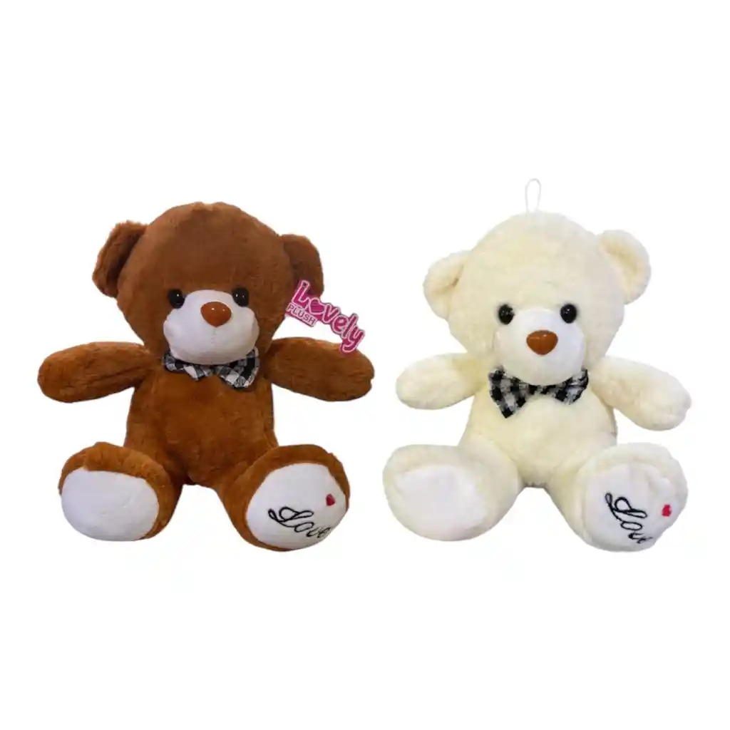 Sorprende a esa persona especial con este tierno peluche artesanal de textura suave y diseño detallado que mide 22cm de alto y cuenta con un elegante corbatín a cuadros junto al bordado Love en su patita siendo el regalo ideal para cualquier cumpleaños o celebración romántica. Este encantador detalle infantil es perfecto para completar un kit de regalo o como pieza central en la decoración temática de tu evento ya que solo viene 1 unidad por empaque para que lleves la ternura a cualquier lado con el tamaño ideal para abrazar. Ten en cuenta que el modelo o color específico depende de la disponibilidad de nuestra tienda al momento de tu compra pero si tienes una preferencia puedes especificar el color deseado en tu pedido y si lo hay disponible se envía de lo contrario se despachará según existencias para que tu fiesta siempre sea especial.