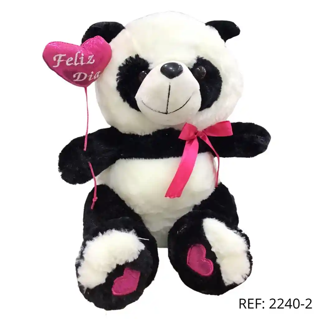 Panda de peluche con lazo ROSA y globo en forma de corazón ‘Feliz Día’. Tierno y especial para regalar 22CMX 28CM APROX