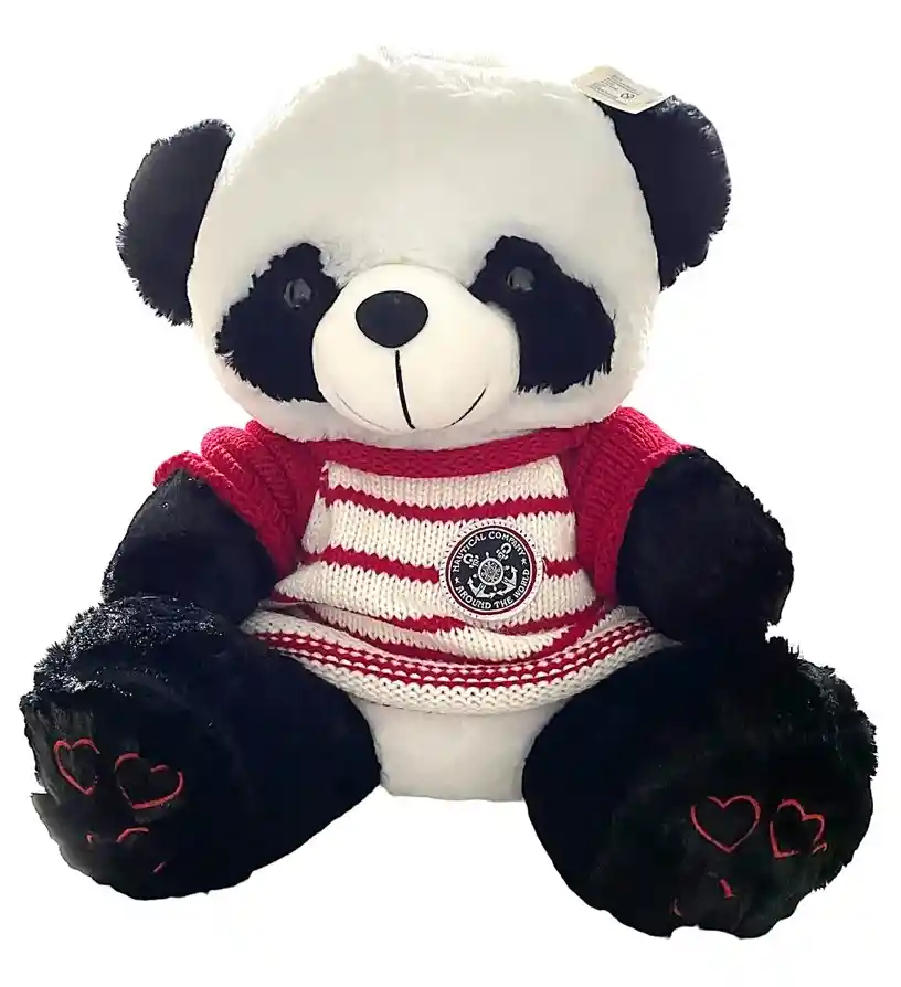 Hermoso y tierno oso peluche con camiseta tejida y corazones en las patas de 50 cms de alto, relleno con algodón siliconado antialergico que no se deforma ni endurece con el tiempo y brinda la mejor sensación de suavidad y finura al tacto.