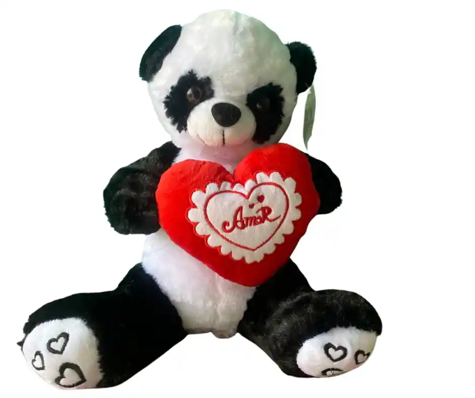 Peluche de 55 cm aproximadamente en forma de oso panda con corazon en las manos