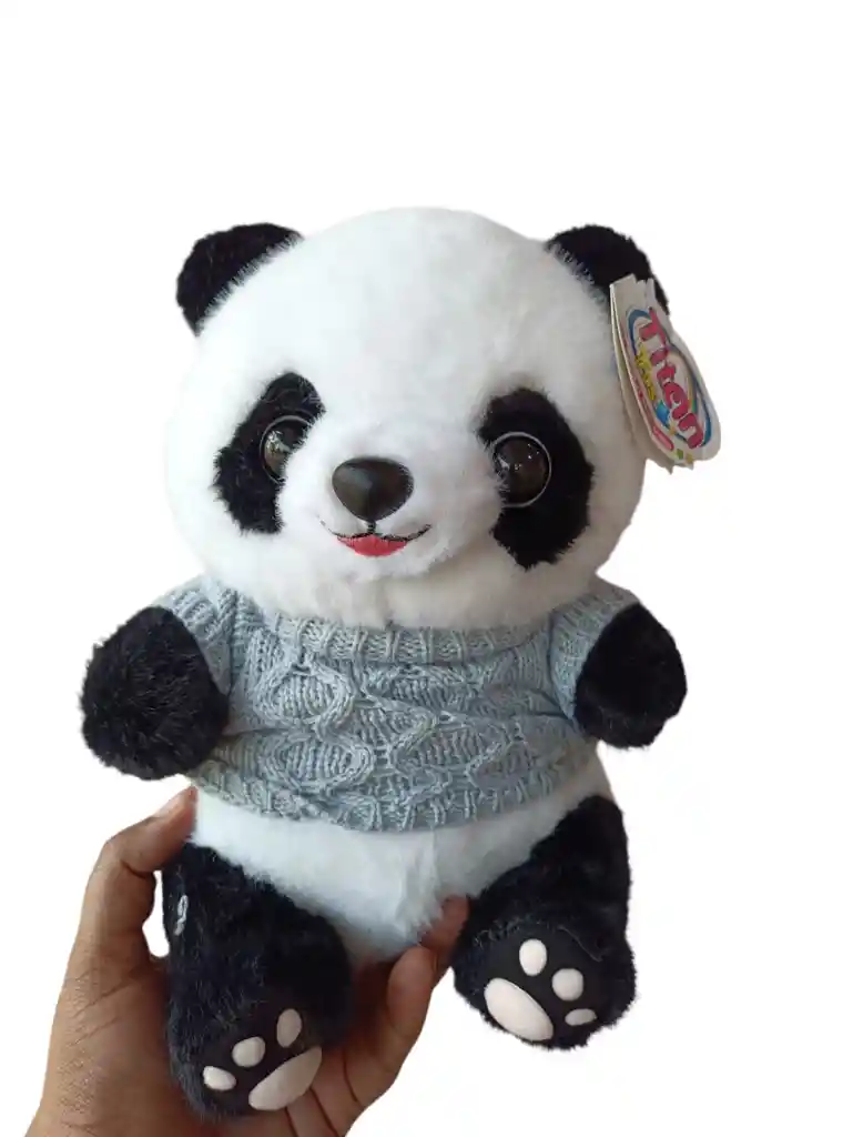 Especial y encantador, este Peluche Panda con saco tejido en azul claro, de colección ¡Espera por ti! Hipoalergénico. Medidas: 25cm alto