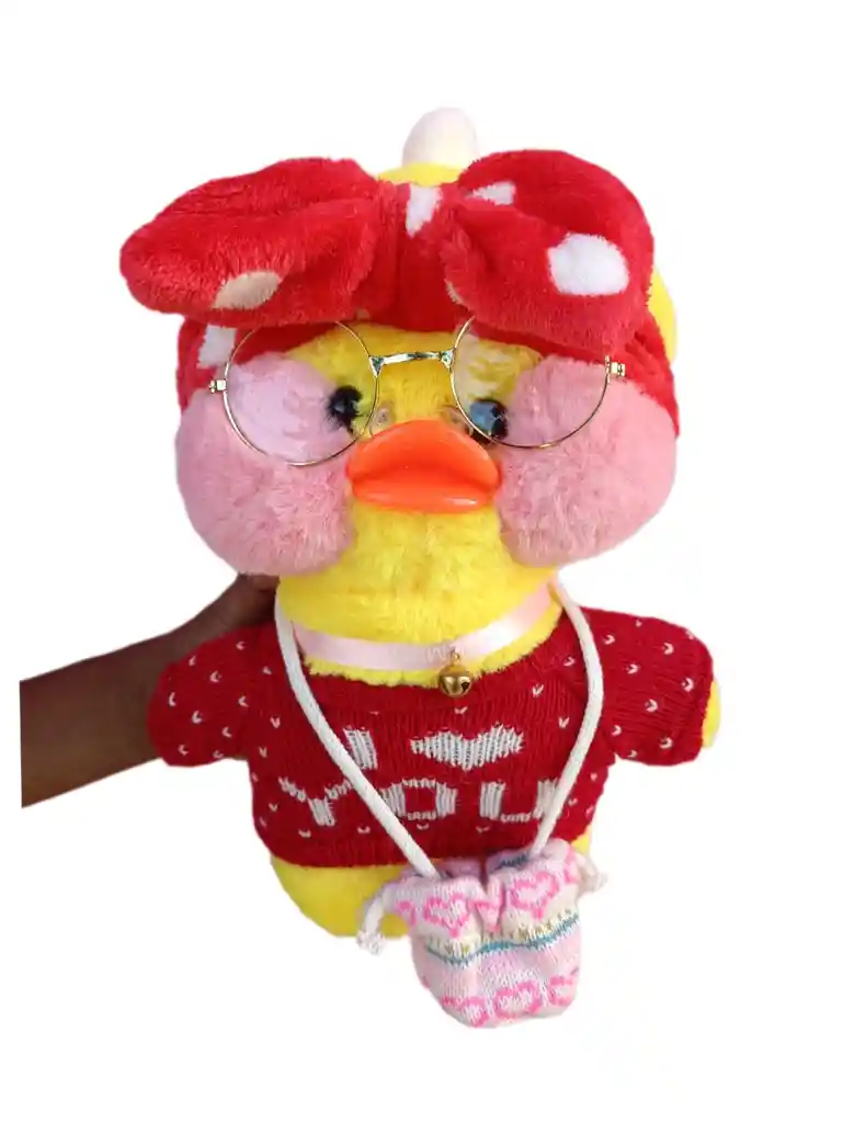 Una patica muy fashion coquette para ti: con anteojos, mochila, sweater y balaca "I love you" Hipoalergénico. Tamaño 30cm.