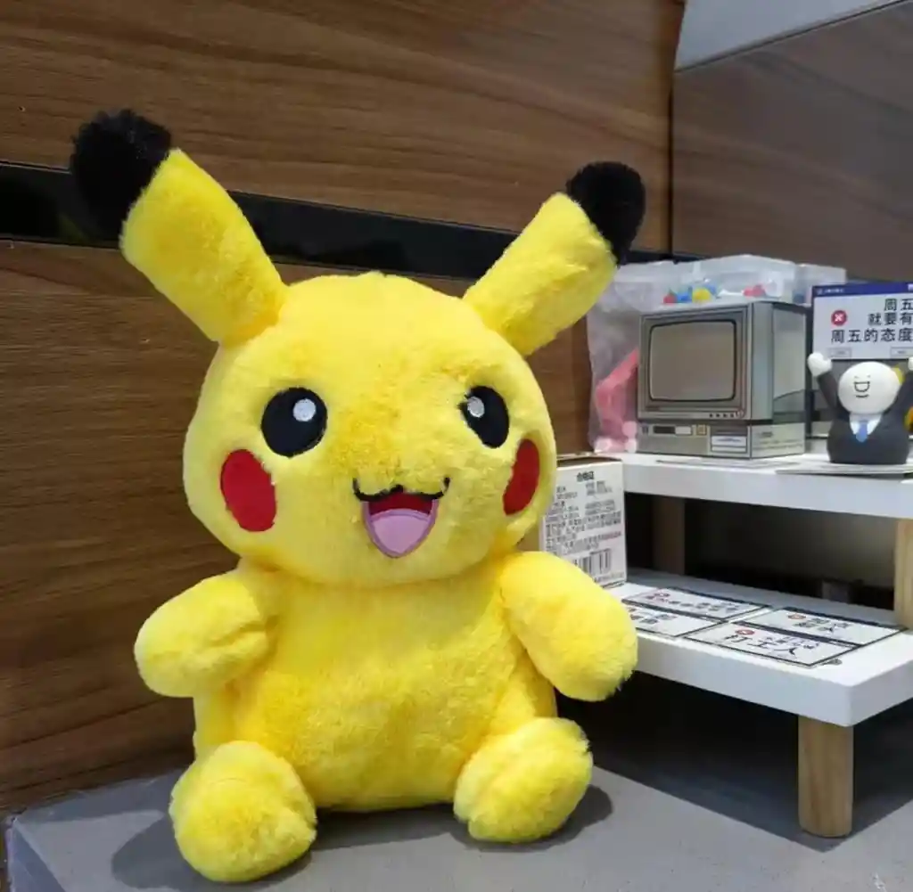 Peluche Pikachu • Material: poliéster, algodón PP, felpa • Medida: 25cm aprox *Debido a factores como la luz y las pantallas, existen ligeras diferencias entre el producto y la imagen*