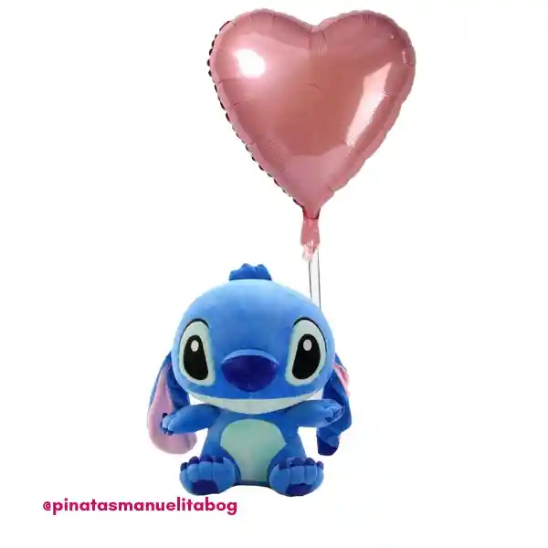 Arreglo de globos metalizados amarrado al peluche incluye: 1 Globo metalizado en forma de corazón rosado inflado con helio 1 Peluche en algodón de Stich Duración de globo inflado con helio aproximadamente de 1 a 2 días. Feliz Dia, Dia Del Niño.