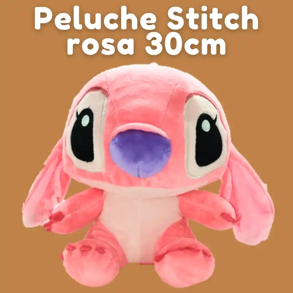 Peluche stitch rosa o azul de tamaño mediano de 30cm, viene en empaque de papel celofán, papel globo, moños y tarjeta personalizada.