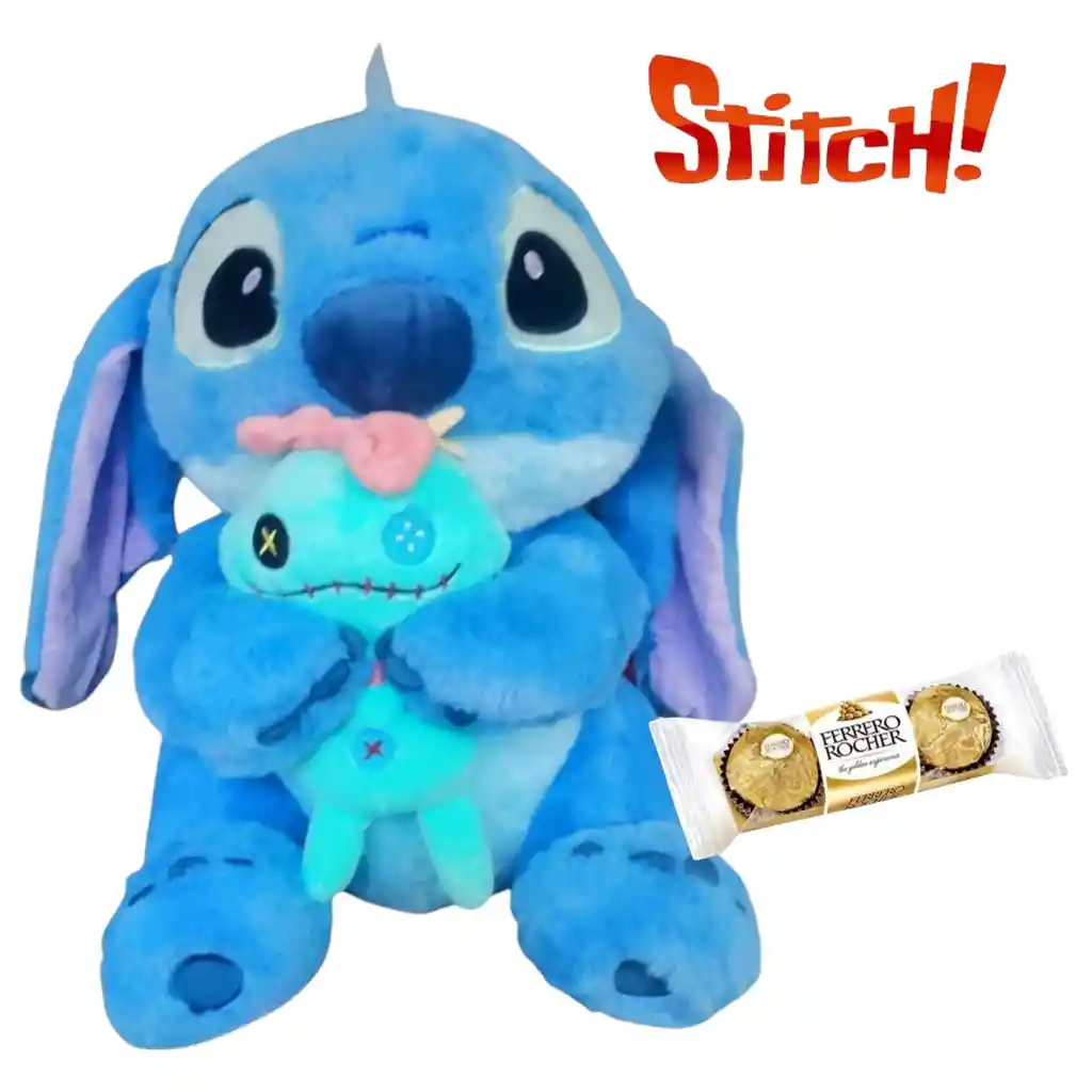 Sorprende con un detalle único y lleno de ternura. Este hermoso peluche inspirado en Stitch es ideal para regalar en ocasiones especiales o para decorar espacios con un toque adorable. Fabricado con material suave al tacto, perfecto para abrazar y brindar comodidad. Su tamaño grande lo convierte en un regalo llamativo que enamora a primera vista. Medidas: Alto: 44 cm Ancho: 31 cm Características: Textura suave y agradable Diseño tierno y llamativo Ideal para regalos, decoración o colección. Incluye: •1 Peluche Stitch •1 Bolsa de Regalo Transparente decorativa •1 Moño (El moño puede variar en su Color) •1 Chocolates Ferrero Rocher X3 Unidades Importante: * Incluye todo lo que está la descripción. * Los demás accesorios que aparecen en la imagen son únicamente para ambientación.