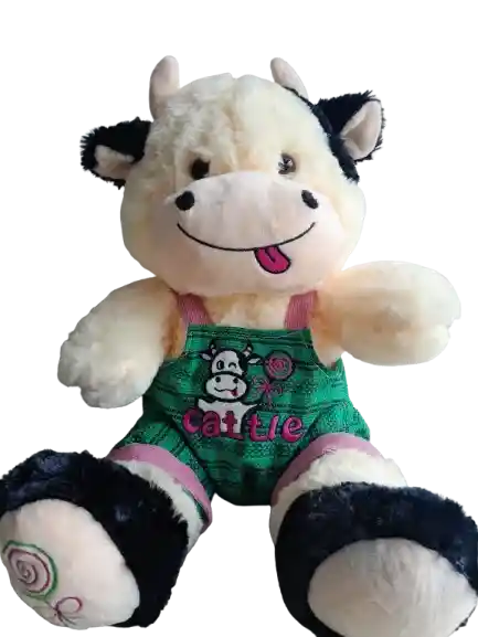 ERMOSO PELUCHE PERSONAJE VACA PARA LOS MAS PEQUEÑOS DE LA CASA O PARA UN REGALO Y SORPRENDER A ESA PERSONA ESPECIAL. MATERIAL:SUAVE. CONTIENE:ROPA. COLORES: BAIGE Y NEGRO. MEDIDAS: 46 LARGO X27 ANCHO APROX.