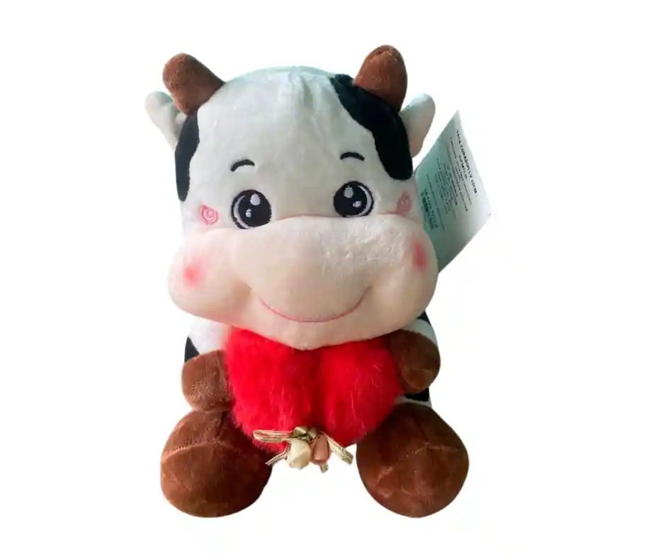 Peluche de aproximadamente 25 cm de en forma de vaca con corazón en la mano
