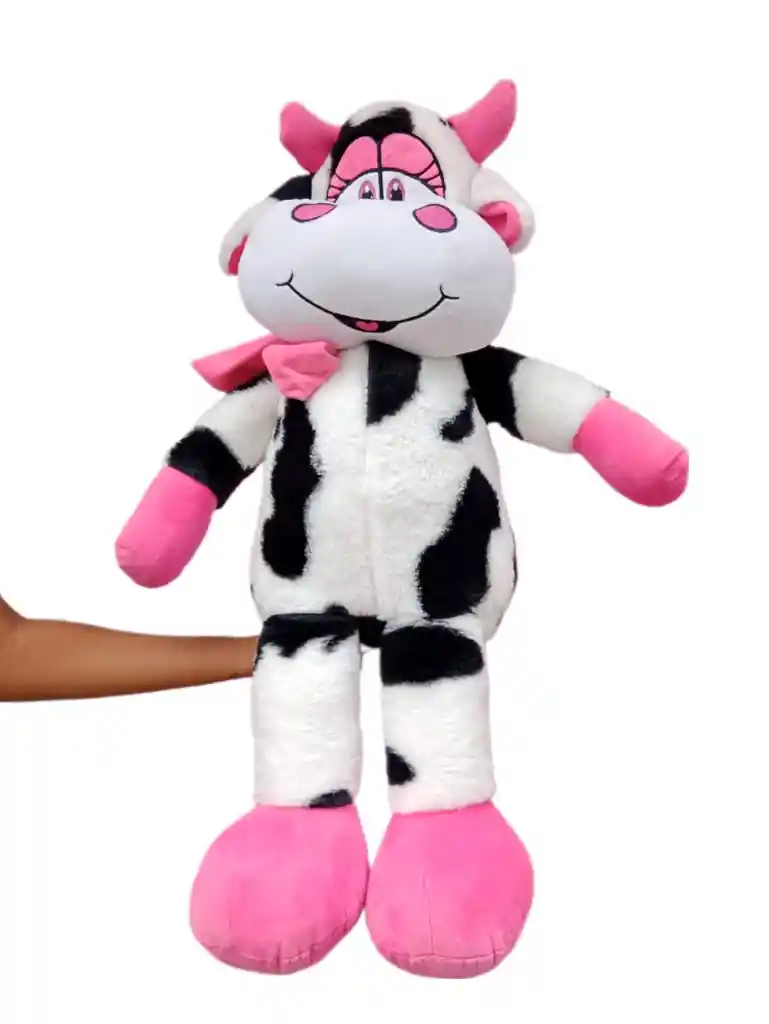 Hermosa Vaquita Coquette de ojos tiernos, bufanda rosa y moño. Hipoalergénica. Tamaño: 70cm x 40 CM (50cm sentada)