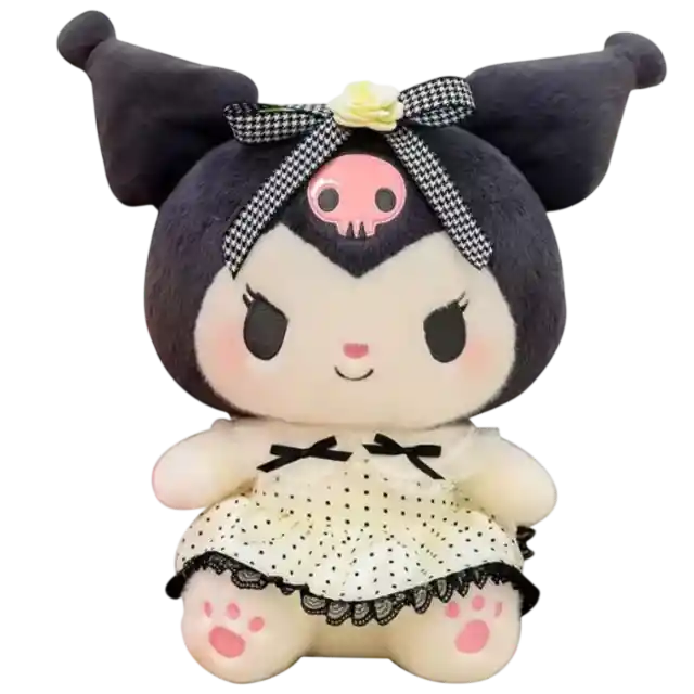 Peluche Kuromi 40 cm | Edición Lujo con Vestido Elegante Sanrio El Peluche Kuromi Edición Lujo de 40 cm combina a la perfección la dulzura kawaii con un estilo sofisticado y travieso. Esta versión especial destaca por su vestido de lujo, convirtiéndola en una pieza central ideal para coleccionistas y fans de Sanrio que buscan un diseño exclusivo y bien elaborado. Cada detalle marca la diferencia: desde su icónica calavera bordada, hasta su vestido con lunares, volantes de encaje y una elegante combinación de tonos negros y rosados. El toque final lo aporta el lazo a cuadros con rosa en la oreja, que eleva su presencia y la convierte en una pieza decorativa de alto nivel. Su felpa súper suave garantiza comodidad tanto para abrazar como para exhibir. Especificaciones Técnicas Personaje: Kuromi Edición: Lujo / Vestido elegante Altura: 40 cm aprox. Material exterior: Felpa premium de alta calidad Relleno: Algodón PP suave Acabados: Bordados, encaje, detalles textiles decorativos Uso: Peluche, decoración y colección Edad recomendada: +3 años Dimensiones (Aprox.) Largo: 40 cm Ancho: 22 – 25 cm Alto: 18 – 20 cm Contenido del Paquete 1 Peluche Kuromi Edición Lujo (40 cm) Beneficios del Producto Diseño exclusivo con vestido elegante y acabados premium Detalles bordados y textiles de alta calidad Textura suave y agradable al tacto Tamaño ideal para decoración o colección Pieza imprescindible para fans de Sanrio Garantía Este producto cuenta con 30 días de garantía por defectos de fábrica. Política de Retracto Aplica retracto de 5 días hábiles desde la entrega del producto. El artículo debe devolverse sin uso, en excelente estado y con su empaque original. Nota Importante – Si el producto llega dañado, notifícalo a la transportadora dentro de las primeras 24 horas. – Todos los productos son verificados antes del envío. – Para hacer válida la garantía, se deben enviar fotos y/o videos donde se evidencie claramente la falla.